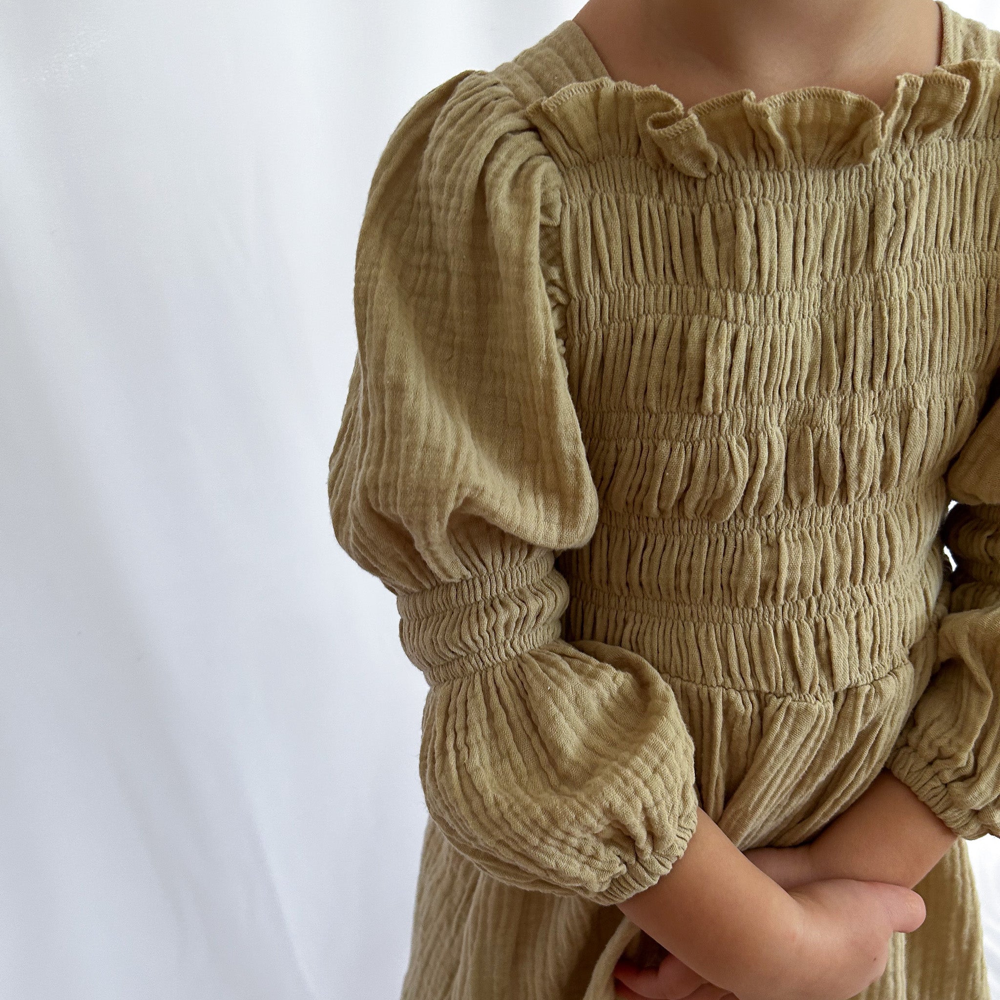 Our Willa Dress is a beautifully crafted piece designed with soft, breathable cotton gauze and vintage-inspired details. Featuring a gently smocked bodice for comfort and ease, and romantic puff sleeves for a touch of old-world charm, it’s the kind of dress that feels special yet wearable every day.