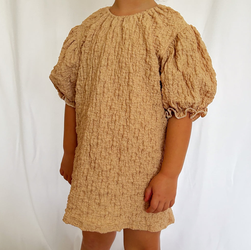 Meet the Dreamy Puff Sleeve Dress. Made in our signature crinkle cotton fabric, with its luxe bronze tone. A classic design that's soft, floaty and made for everyday adventures or special moments alike.