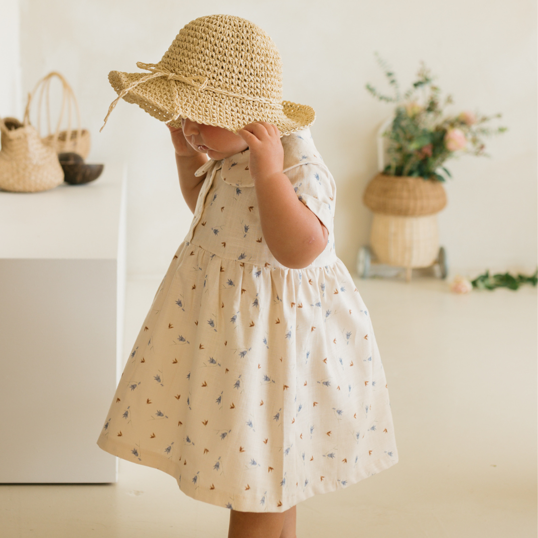 Hand painted design. Effortless comfort. Classic. A twirl-worthy dress made for play & special moments in a luxurious linen & cotton blend.