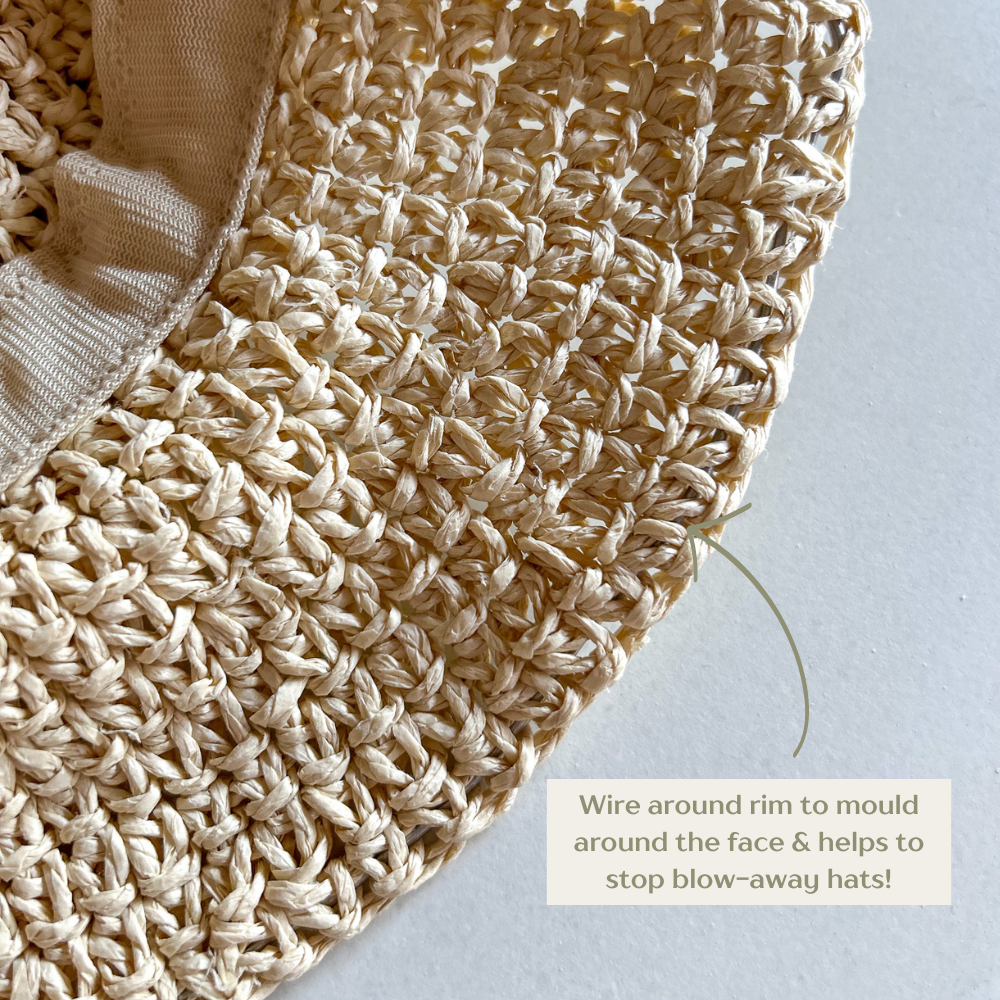 Designed with a hidden metal wire around the brim, this hat offers a customisable fit that moulds gently around your face while adding just enough weight to stay put on breezy days. Lightweight, breathable, and beautiful ~ it's timeless, practical and totally match-worthy.